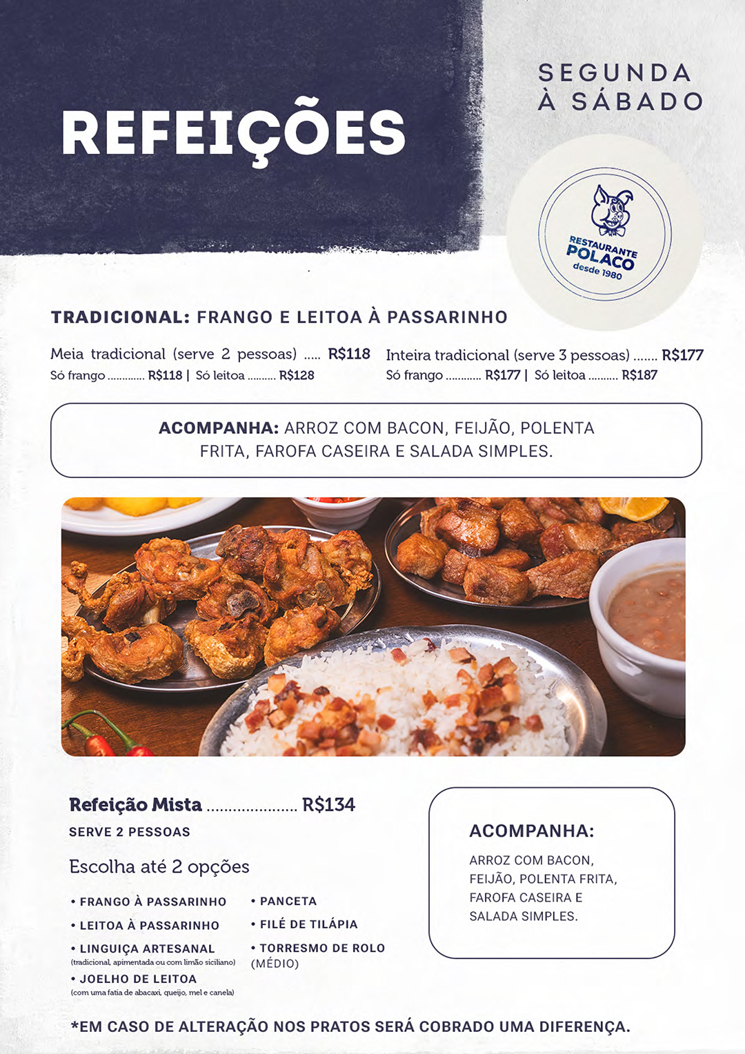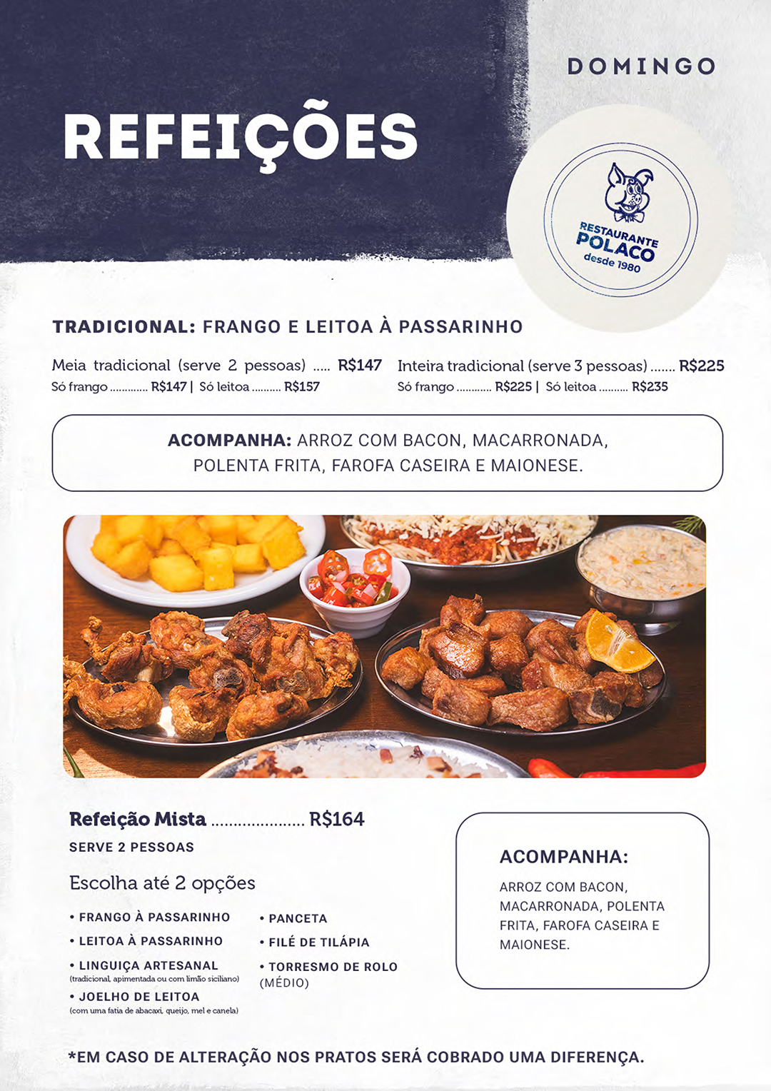 Cardápio exclusivo para os domingos